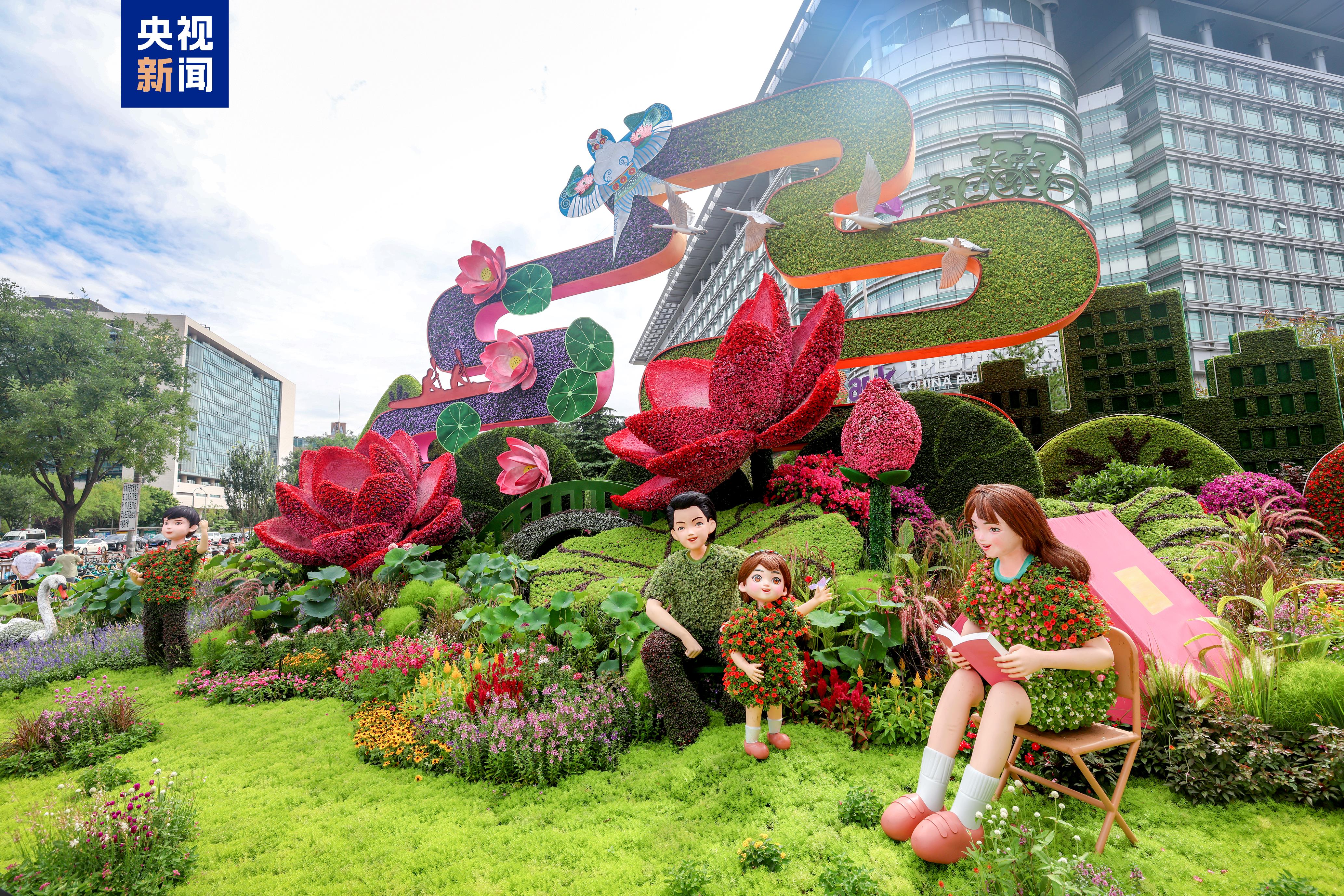 今年是中国人民抗日战争暨世界反法西斯战争胜利80周年,北京围绕“铭记历史、缅怀先烈、珍爱和平、开创未来”的主题,综合运用硬质景观、宣传画面、花坛花卉、夜景照明、喷泉水景等9类布置形式,弘扬中国人民的伟大抗战精神和爱国主义情怀。
